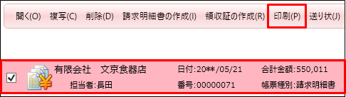 - 印刷する請求明細書にチェックを付けて、[印刷]をクリックします。