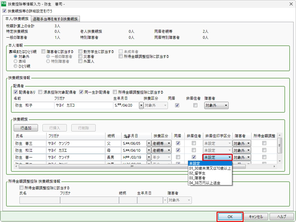 年末調整ナビの[扶養控除等情報入力]画面で設定する場合