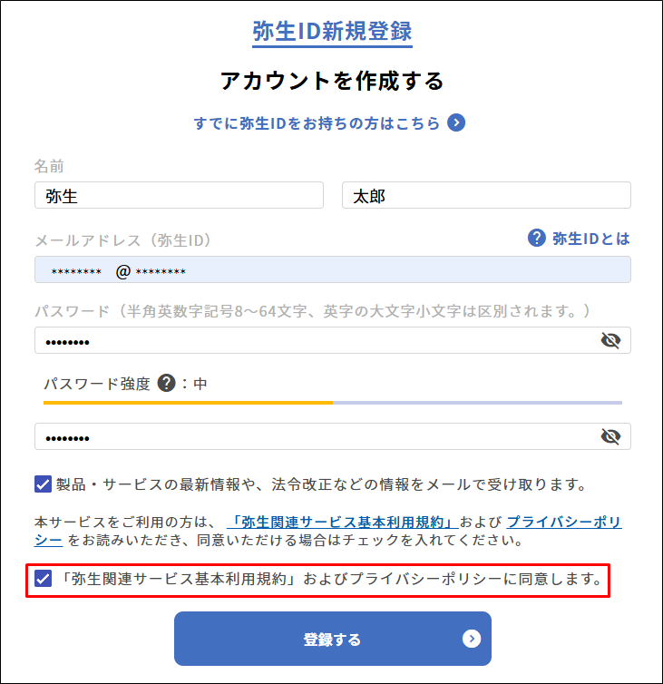 弥生IDの新規登録は不要です。