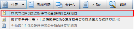 - [付表]をクリックして[株式等に係る譲渡所得等の金額の計算明細書]を選択します。