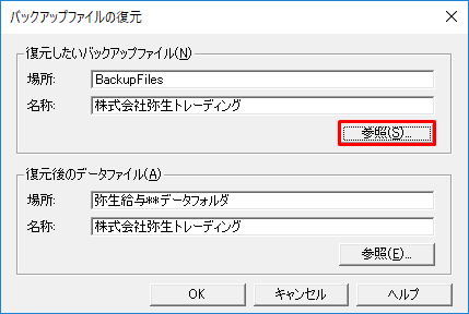 [復元したいバックアップファイル]の[参照]をクリックします。