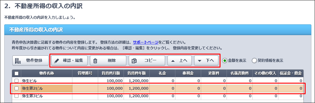 青色申告決算書/収支内訳書の不動産所得の収入の内訳の登録 やよいの青色申告 オンライン サポート情報