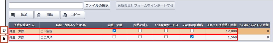 医療費集計フォーム(Excel)を使用して、医療費を入力したファイルをインポートすることもできます。