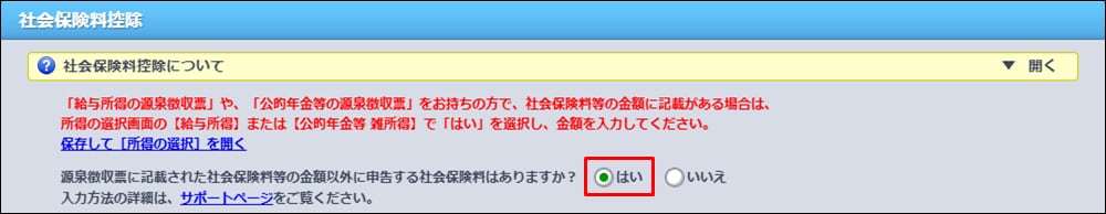 • 給与所得はない、または給与所得の年末調整で控除を受けていない保険料がある場合 [はい]を選択します。