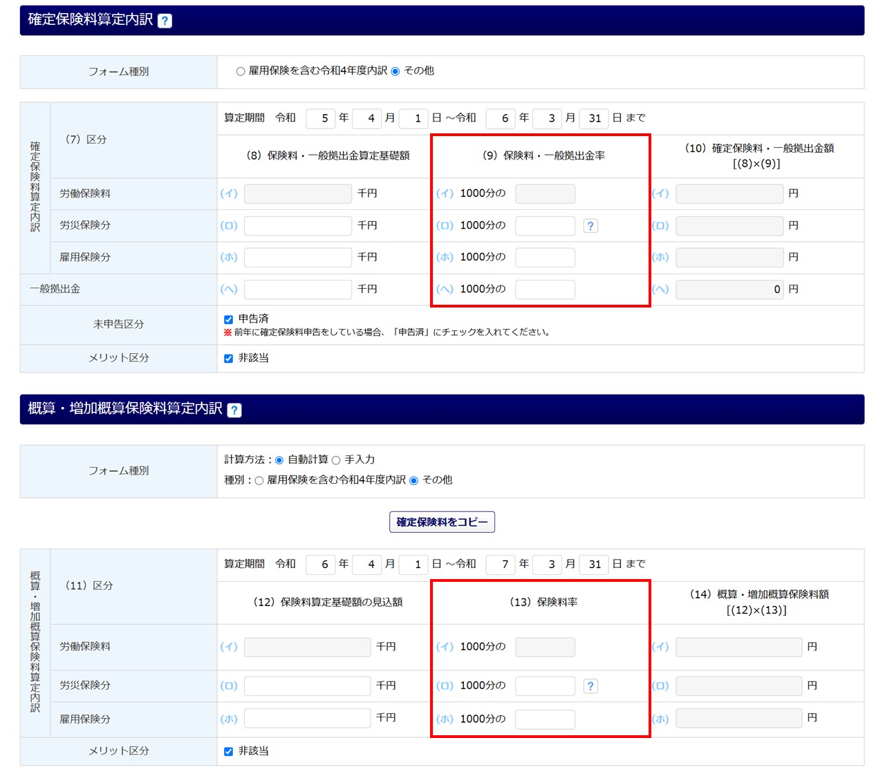雇用保険分の保険料率が表示されていない場合には、「雇用保険 特掲区分」を設定してください。