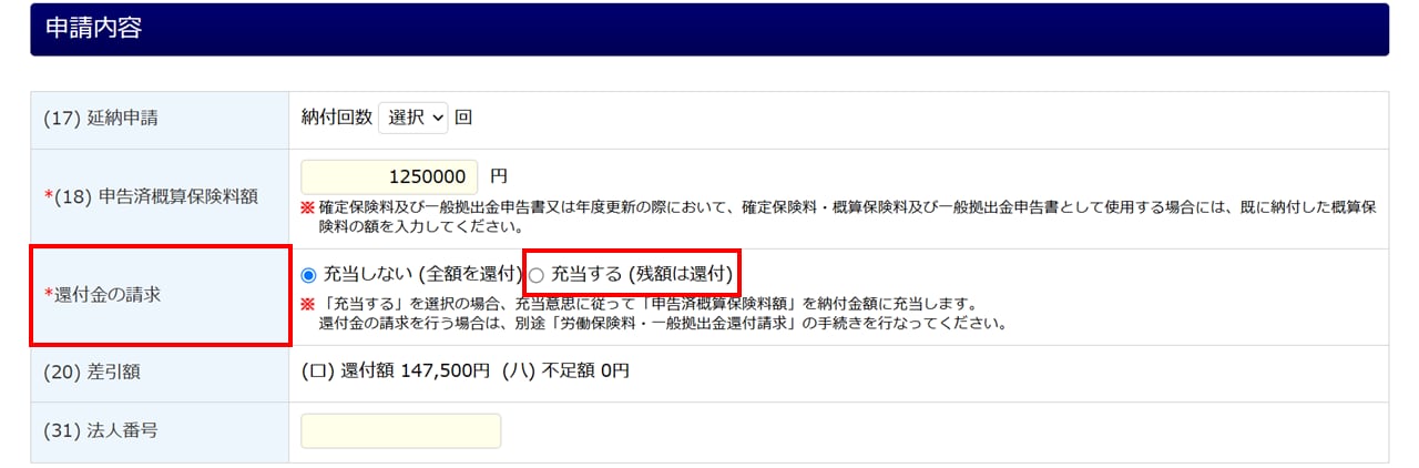還付金を労働保険料や、一般拠出金に充当することは可能です。