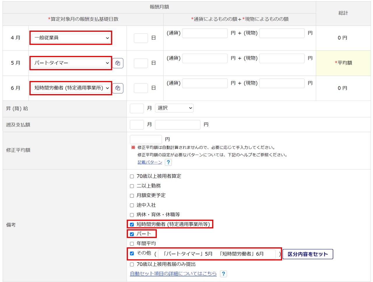 | 短時間労働者(特定適用事業所) | 従業員台帳の「特定適用事業所の短時間労働者」を設定してください。 |