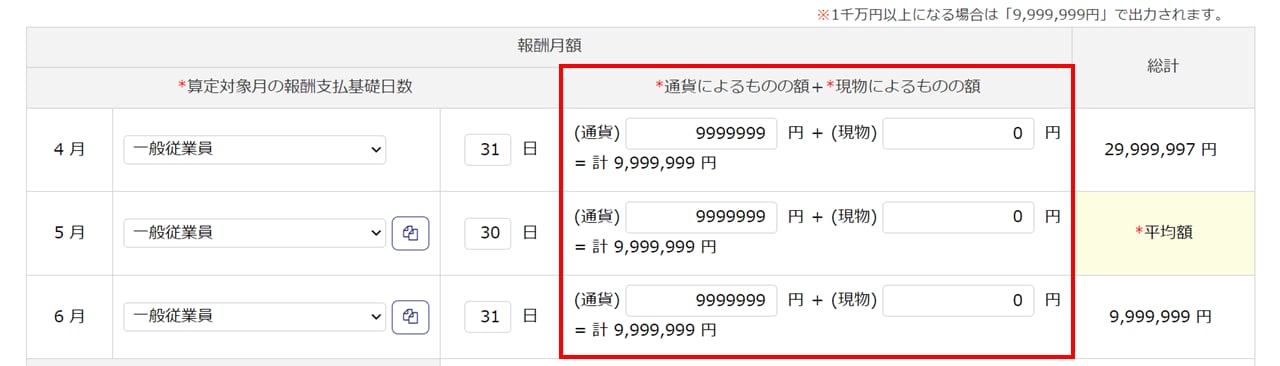 1,000万円以上の金額の場合には、「9999999円」と、入力してください。