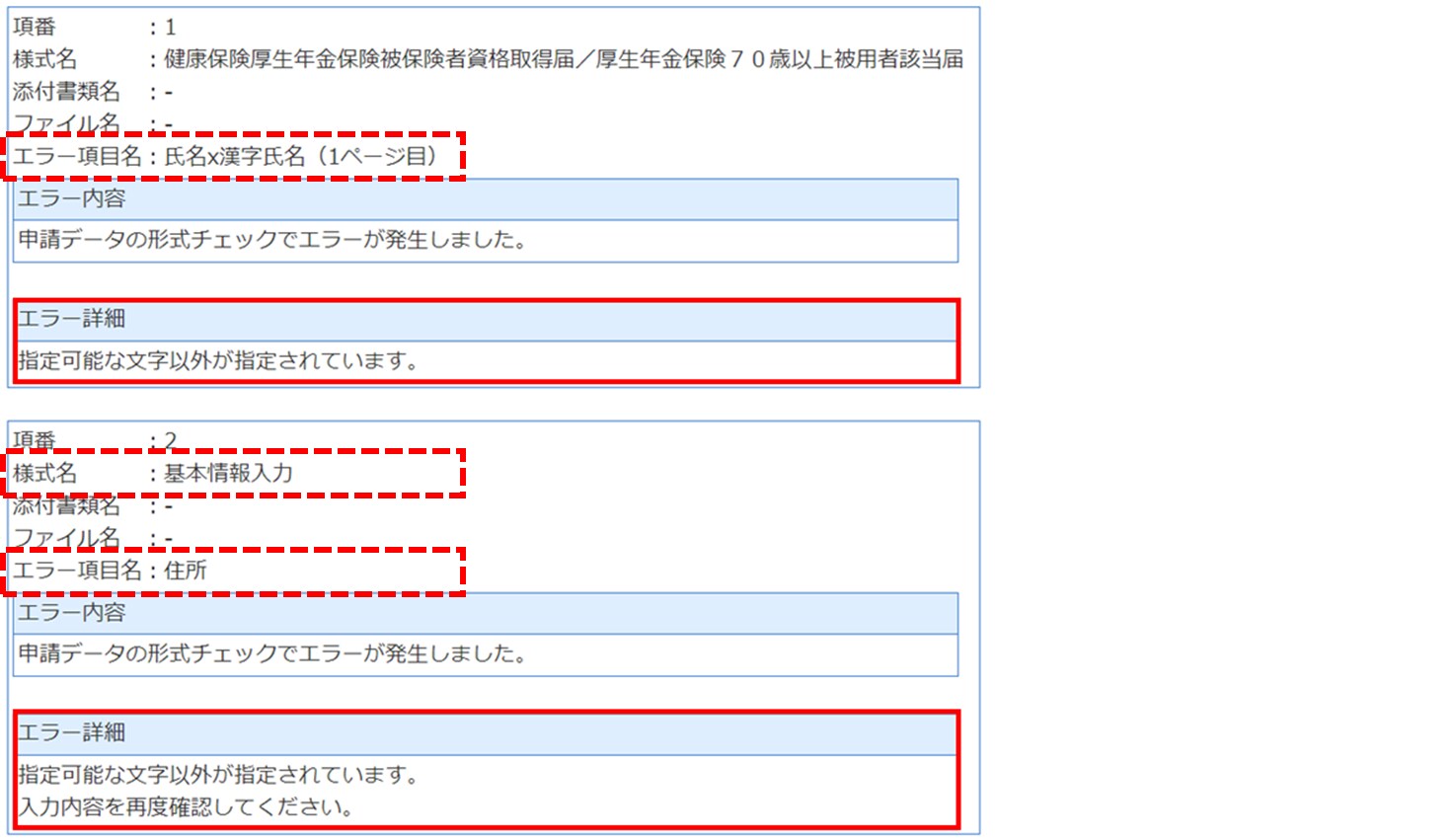入力可能な文字について(e-Gov電子申請ページ) - エラーが生じている箇所の確認