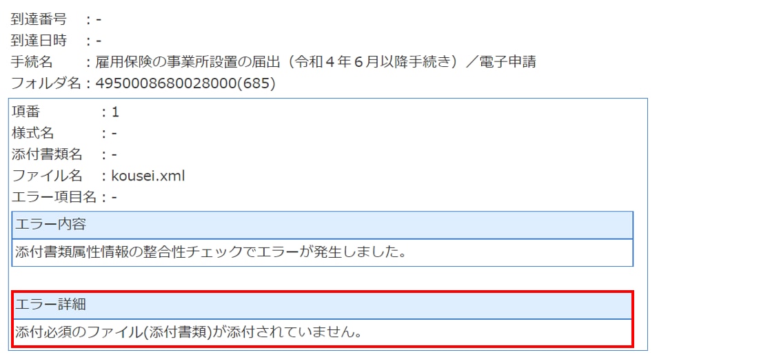 ※「添付書類XXX事業所」等、「添付書類」以外の文言が含まれる場合にも、エラーファイルとなります。