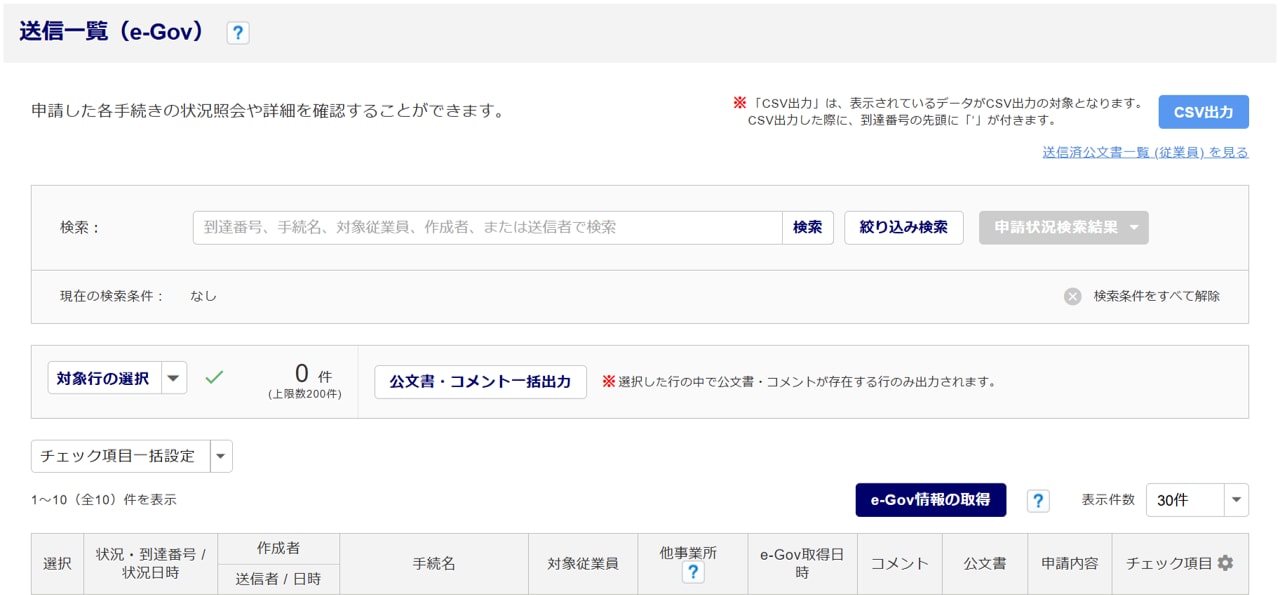 ただし、「送信一覧」画面に表示されている情報は、直近3カ月間のみの情報となります。