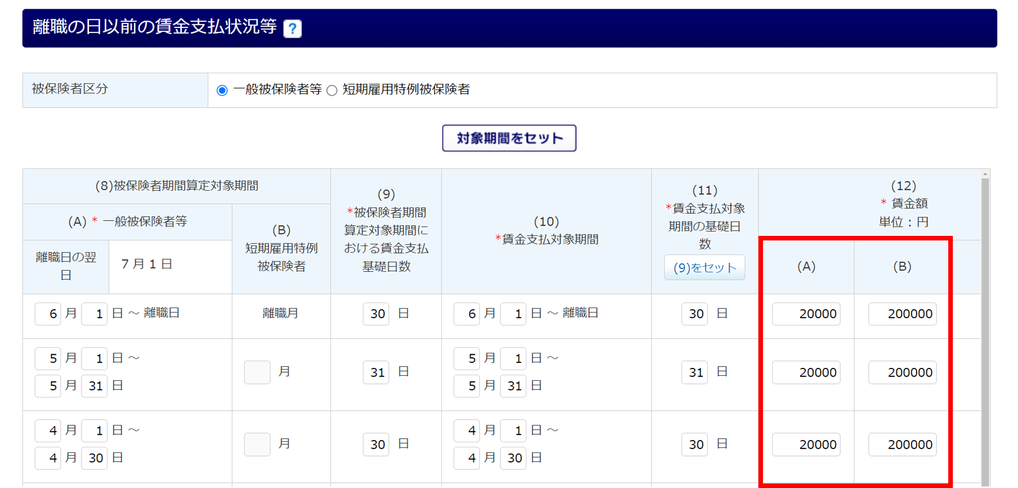 [給与データ]の対象項目に取り込んだ金額は、「(B)」欄へ自動で反映することができます。