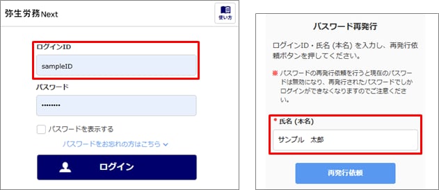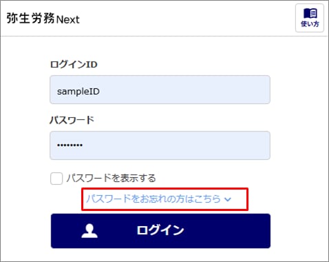 勤務先の管理者へ、弥生労務 Next以外の方法を使ってパスワード再発行依頼をおこなってください。