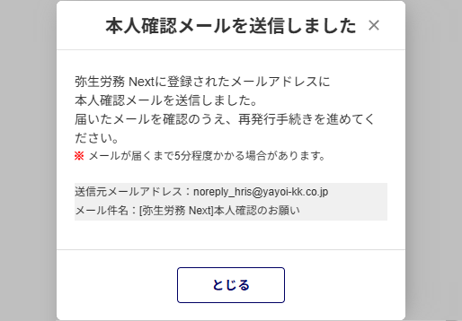 - 差出元のメールアドレスは「noreply_hris@yayoi-kk.co.jp」です。
