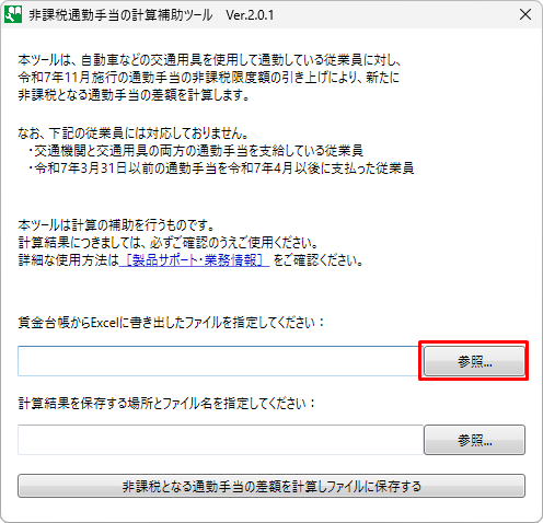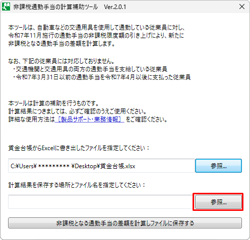 - [非課税となる通勤手当の差額を計算しファイルに保存する]をクリックします。
