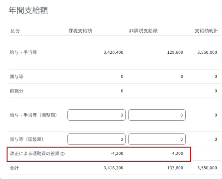 - 事前に計算した調整額を手入力したい場合は、[調整額を手入力]にチェックをつけて入力して保存します。