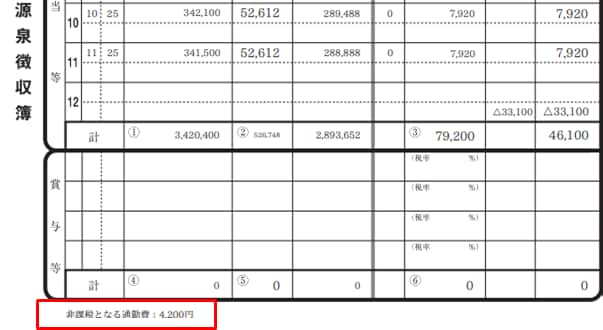 計算された調整額は、[年調明細個人別]画面や、源泉徴収簿の左下に反映されます。
