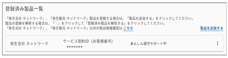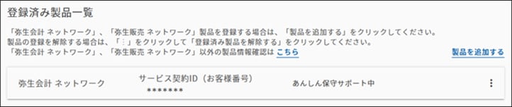 [登録済み製品一覧]にサービス契約ID(お客様番号)が登録されたことを確認します。