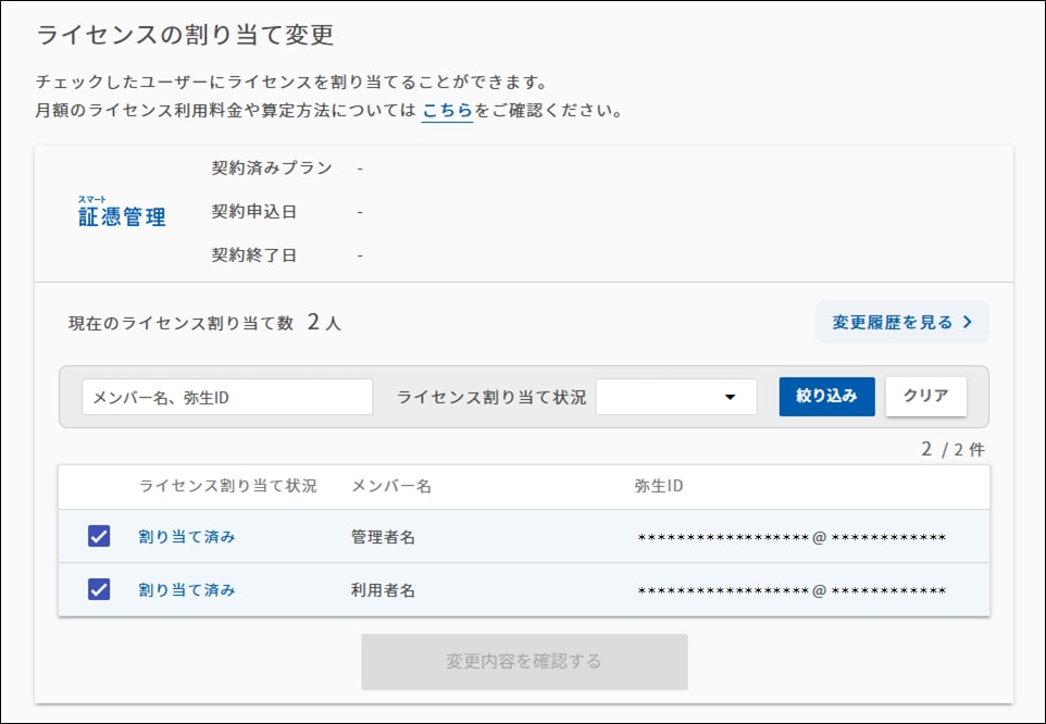 - 該当メンバーの先頭にチェックを付け、[変更内容を確認する]をクリックします。