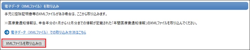 以下の控除証明書等のXMLファイルのデータを取り込みます。