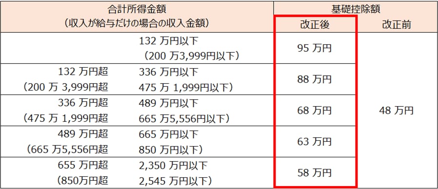 詳しくは国税庁の令和7年度税制改正による所得税の基礎控除の見直し等についてを参照してください。