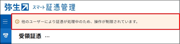 スマート証憑管理で、他のユーザーが「一括操作」や「証憑のアップロード」を行っている間、本メッセージが表示され操作が制限されます。