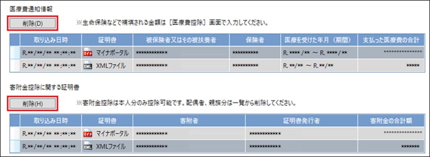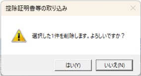 - [取り込み済みの控除証明書等一覧]から削除します。