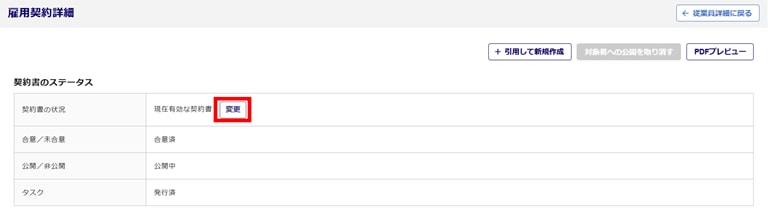 雇用契約書を公開後、従業員にタスクを発行していない場合、雇用契約書を「非公開」に変更することで修正ができます。