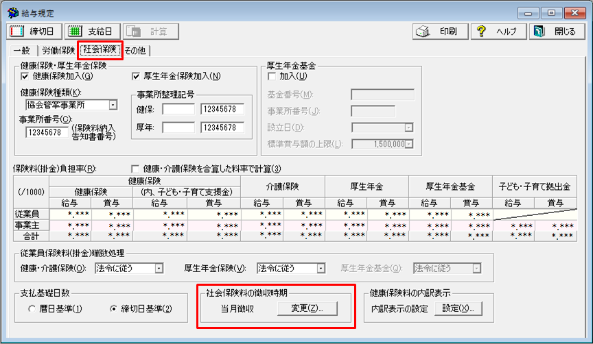 保険料率は、千分率(**.***/1000)で入力します。
