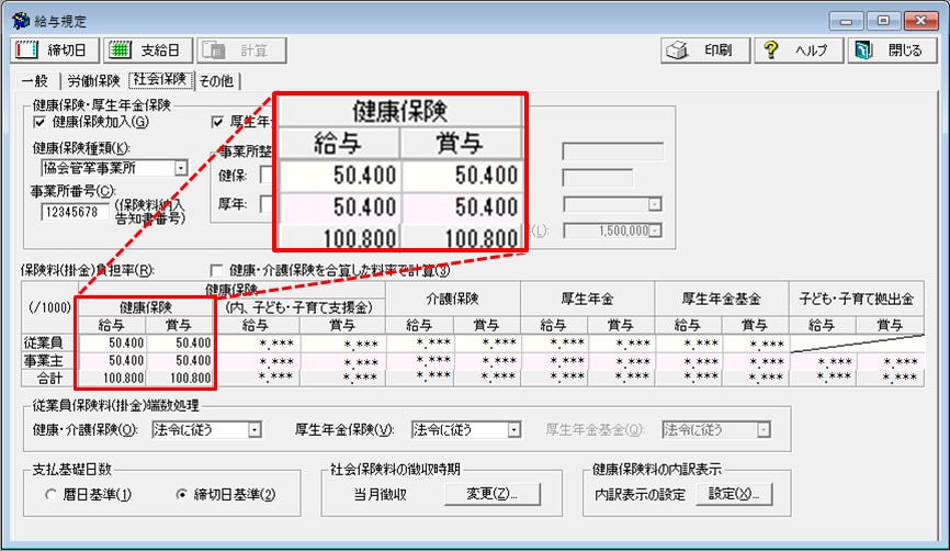 [給与規定]で保険料率の変更を行っても保険料が変わらない場合