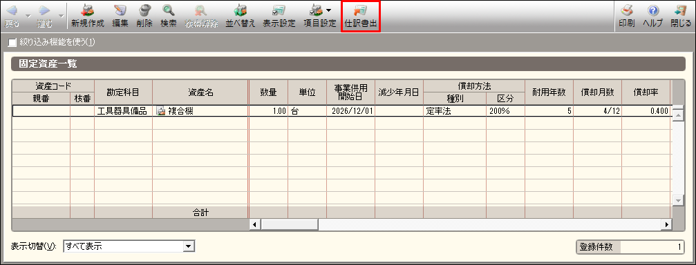 [固定資産一覧]への登録の詳細は、以下を参照してください。