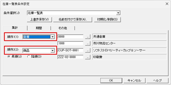 [順序2]を[倉庫]にした場合の絞り込みについて