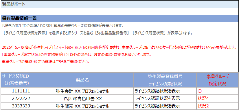【新ルール】2026年6月以降は、「利用する弥生ID」と「製品」が同じ事業グループに登録されている必要があります。