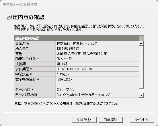 チェックを付けた場合、データ作成後に設定を解除することはできません。チェックを付けなかった場合は、後から[事業所設定]で設定することができます。