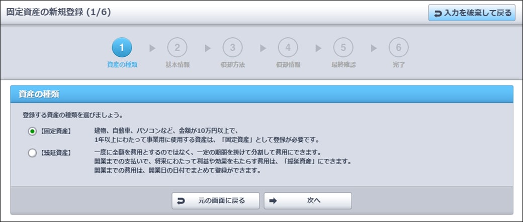 - [新規登録]をクリックします。 [固定資産の新規登録]画面が表示されます。