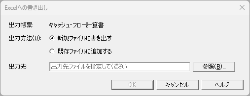 項目 説明 出力帳票 「キャッシュ・フロー計算書」/「5期比較キャッシュ・フロー計算書」と表示されます。 出力方法 出力先のExcelファイルを選択します。 - 新規のExcelファイルに書き出す