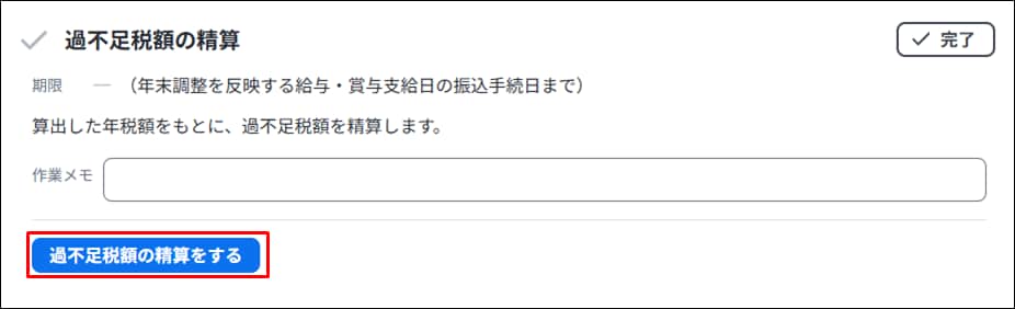 - やることリスト「過不足税額の精算」で[過不足税額の精算をする]をクリックします。