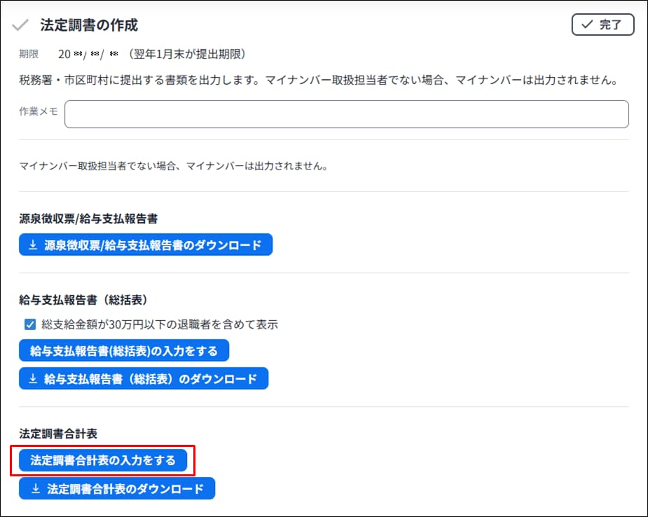 - やることリストに戻って、「法定調書の作成」を表示します。