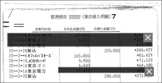 証憑データ化サービスでは、通帳やクレジットカード利用明細、現金出納帳、総合振込一覧表を取り込んだ際に、データ化の対象から外したい明細を除外指定することができます。