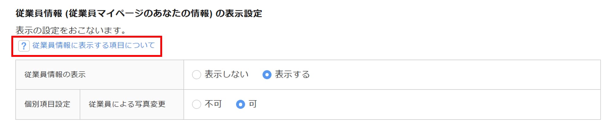 従業員情報(従業員マイページのあなたの情報)の表示設定