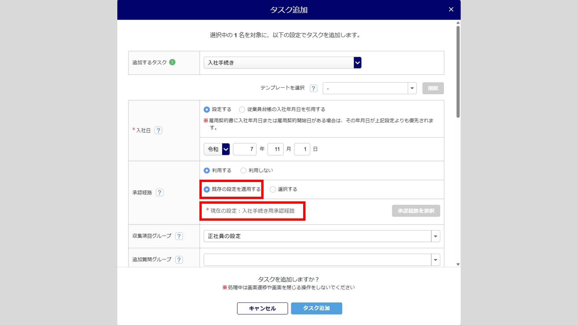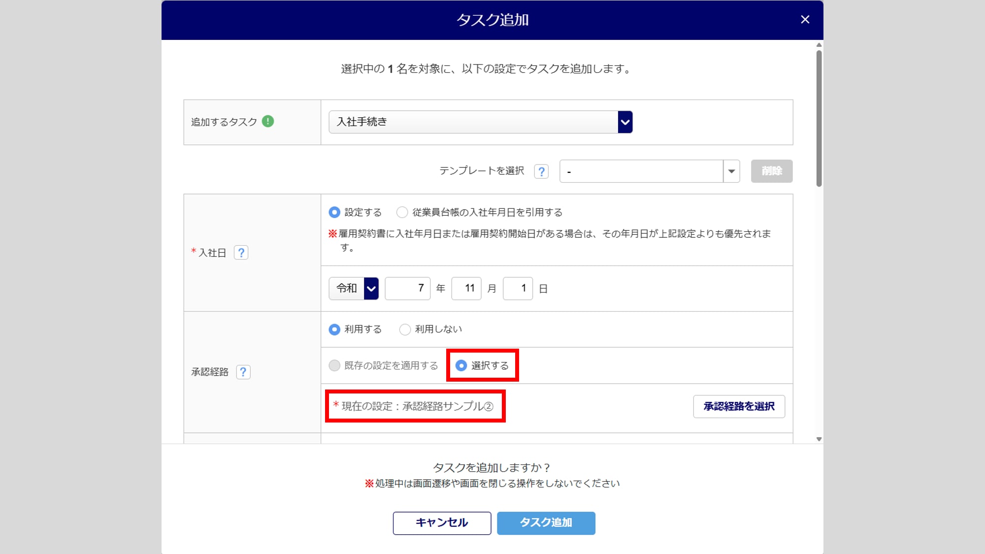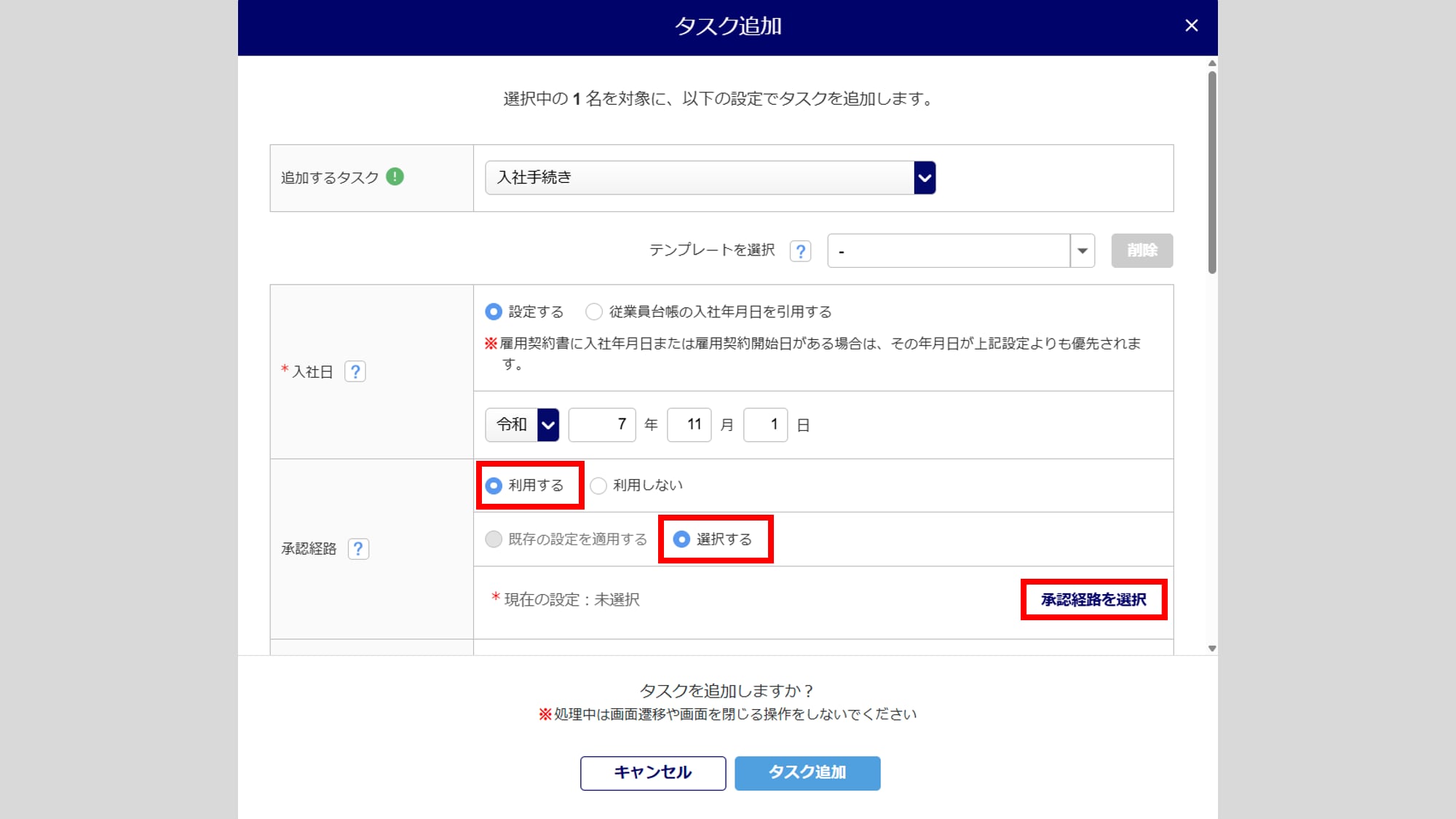 タスク発行時に承認経路を設定する場合