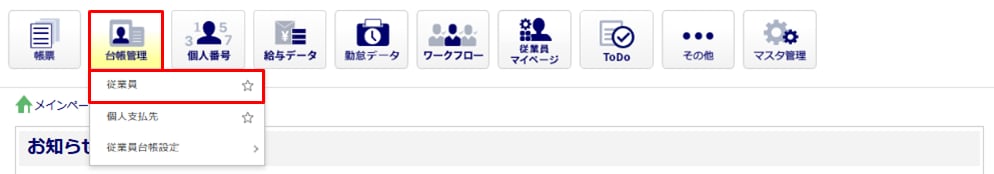弥生労務 Nextにすでに登録されている従業員情報を編集する場合は、下記操作をおこないます。