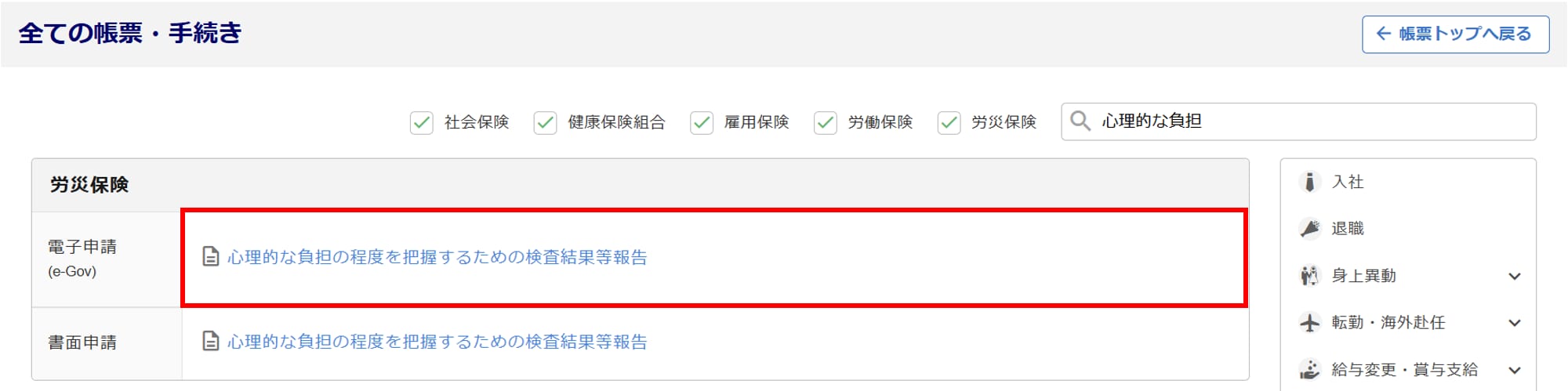 - 「心理的な負担の程度を把握するための検査結果等報告」をクリックします。
