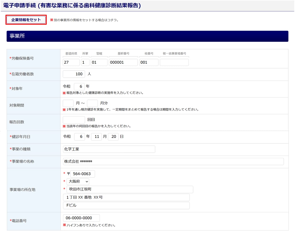 ※入力フォームの背景色が黄色の項目は、[企業情報をセット]で選択した情報を引用しています。