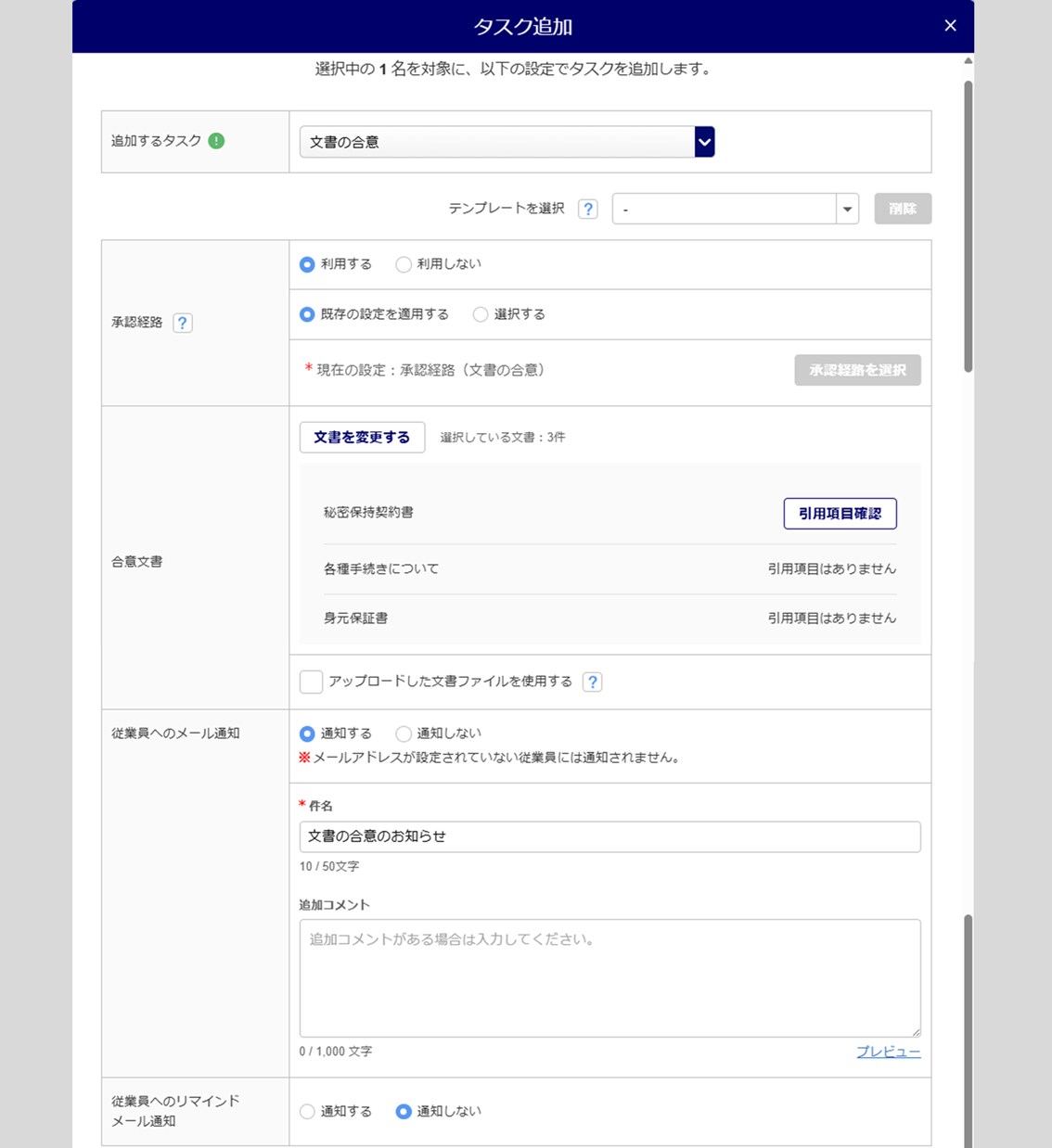 - 文書の合意タスクの発行