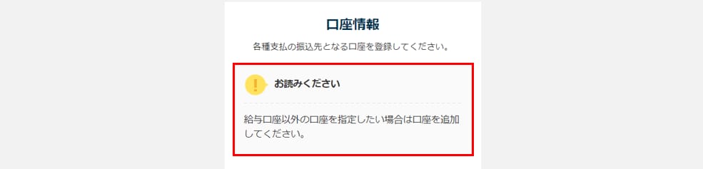 - 口座情報を追加する場合は、[口座を追加](①)をクリックします。