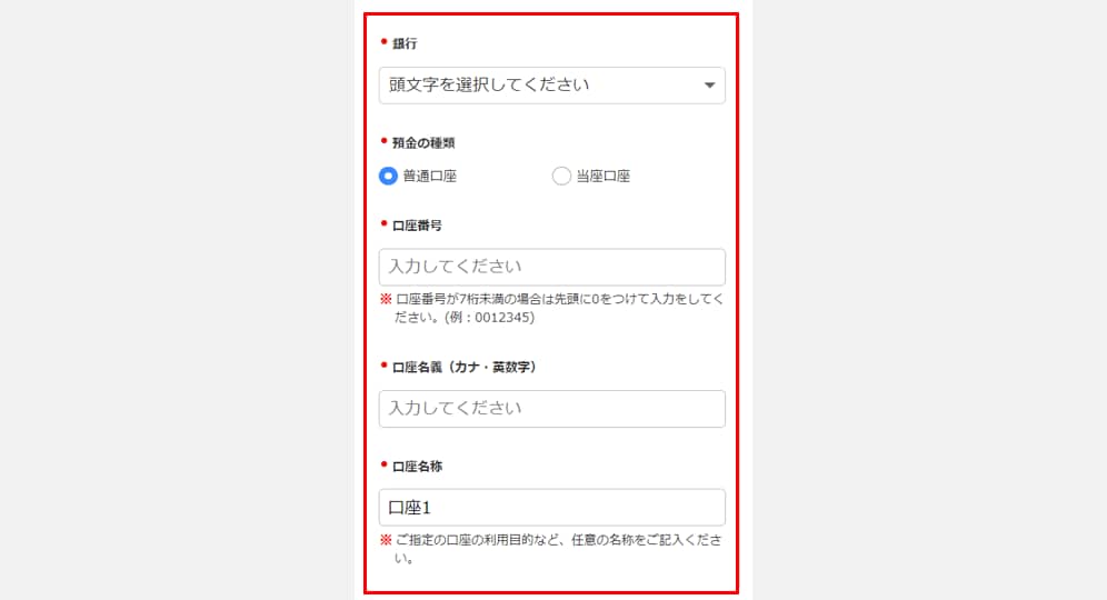 口座情報の入力