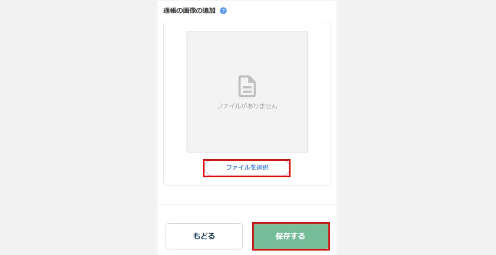 - 通帳の画像をアップロードする場合は、[ファイルを選択]をクリックし、画像ファイルを選択します。ファイル選択後、[保存する]をクリックします。※勤務先の管理者側の設定により「通帳の画像の追加」欄が表示されない場合があります。通帳の画像の追加について- 通帳をお持ちの方:通帳の見開きの画像を添付してください。