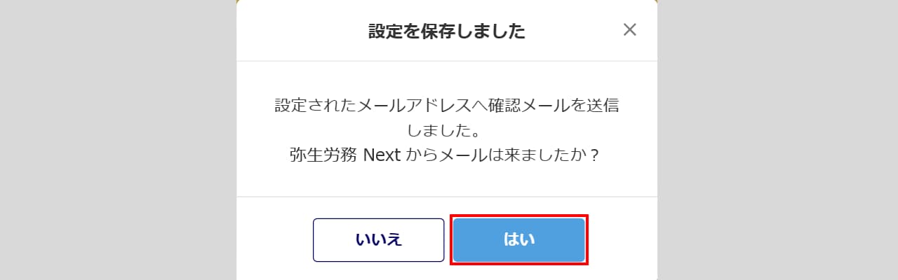 設定後、登録したメールアドレス宛に確認メールが届きます。メール確認後、[はい]をクリックします。