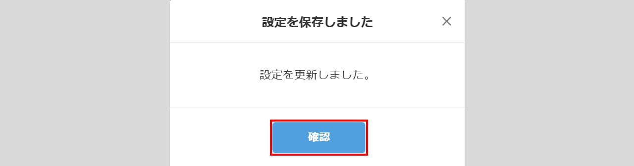 設定後、ポップアップが表示されますので、[確認]をクリックします。